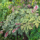 Misty Blue' forms a mound of lacy blue-green foliage, bearing taller stems of white flowers in summer. The flowers are fragrant. Showy white berries in summer are held on contrasting red stems. A good choice for shade; this Actaea requires moist soil.