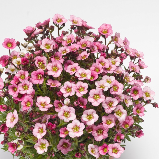 The 'Early' collection are the earliest flowering Saxifraga, from April to midsummer, all with a very uniform habit, light-green foliage and masses of small flowers. Suitable for all garden plantings along with pots and mixed containers. 'Pink Heart' produces pink flowers with a dark centre.