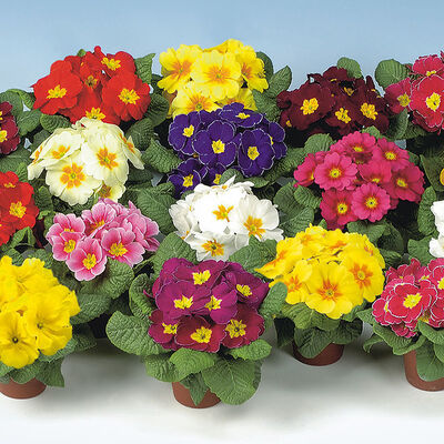 - primula o dużych, intensywnie wybarwionych kwiatach